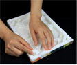 6. Frame Folding : Fold each corner of canvas against the tape as firmly as you can. Fold up the frames and lock the hinges to lock the frame.